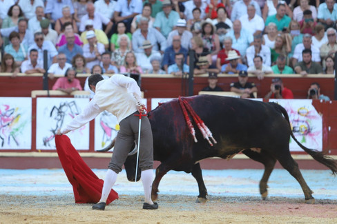 4º "Jabaíto", nº 63. Muy despacio ha toreado por verónicas ‘El Cid’ en el saludo al cuarto de la corrida. Clase y entrega evidenció el astado en el peto, suministrándole dos fenomenales puyazos Manuel Jesús Ruiz "Espartaco". Gran toro este "Jabaíto" de Miura, que rompió a embestir en la templada muleta de ‘El Cid’, que lo cuajó a con ambas manos, destacando las series instrumentadas con la zurda, echando la franela adelante, tragándole al animal y esperando a que metiera la cara en el engaño para tirar de él muy despacio hasta el final del viaje. Profundidad en los muletazos y en la embestida del cornúpeta que se entregó totalmente ante el poder y el sometimiento del diestro de Salteras. Actuación importante de verdad de ‘El Cid’, que culminó su labor con un espadazo en lo alto. Dos orejas.