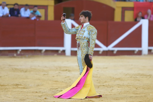 El joven de Arcos de la Frontera mostró temple y buenas formas ante su ejemplar. Destapó naturalidad y basó su faena en la elegancia y la ligazón. Crujió por abajo a su antagonista en series profundas y largas. Ángel Pérez ahormó un quehacer muy importante y mostró una acusada personalidad que refrendó con la espada.